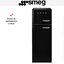 Холодильник Smeg FAB30LBL5 — модель черного цвета в стиле 50-х годов с левым креплением дверных петель. Оснащен верхней морозильной камерой и зоной свежести, позволяющей хранить мясо, рыбу, молочные продукты, не замораживая их. Имеет наивысший класс энергоэффективности А+++ и уровень шума 37 дБ.