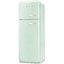 Двухкамерный холодильник пастельного зеленого цвета в стиле 50-х годов станет изюминкой вашего интерьера. Морозильник расположен сверху, имеет два отсека, разделенных полкой. В холодильной камере полки из закаленного стекла (в том числе на двери), есть специальное отделение для бутылок.