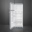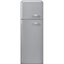 Холодильник с морозильной камерой в стиле 50-х годов серебристого цвета. В разных отделениях разная система размораживания — ручная в верхней, автоматическая в нижней. Двери нельзя перевесить на другую сторону.