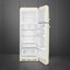 Холодильник кремового цвета в стиле 50-х годов — необычный акцент на вашей кухне. В основной камере можно расположить продукты на регулируемых по высоте полках, в выдвижном контейнере. Специальная вместительная зона свежести предназначена для хранения овощей при температуре близкой к 0 градусов.