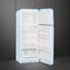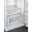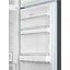 Холодильник пастельного голубого цвета в стиле 50-х годов подходит и классическому, и ретро-интерьеру. Холодильная камера имеет вместительный контейнер в зоне свежести для овощей и фруктов. Морозильник расположен сверху, имеет устойчивую полку.