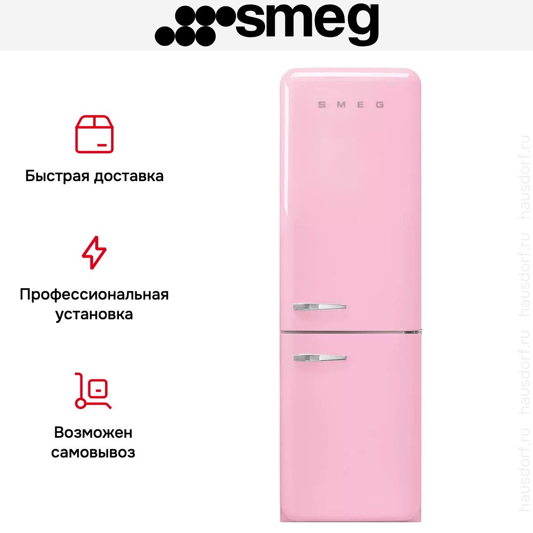 Smeg FAB32RPK5 — холодильник в корпусе розового цвета с правой дверцей и морозильником снизу. Прибор оснащен системой размораживания No Frost в обеих камерах и зоной свежести с температурой около 0 градусов. Модель отличает низкий уровень энергопотребления класса А+++ и малый уровень шума 37 дБ.