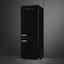 Двухкамерный холодильник в стиле 50-х выполнен в черном цвете, который подойдет как ретро, так и современной кухне. Полный No Frost в обоих отделениях позволяет равномерно охлаждать или замораживать продукты без перемерзания. Вы можете регулировать температуру с помощью панели управления, расположенной на внутренней стенке. Там же находится удобный LED-дисплей с индикацией. Полки из закаленного стекла выдержат тяжелую посуду, в холодильном отсеке их можно регулировать по высоте как в камере, так и на двери.