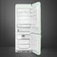 Холодильник пастельного зеленого цвета с двумя камерами выполнен в стиле 50-х годов XX века. Он подойдет ретро-кухне и современному интерьеру в светлых тонах. Несмотря на «старомодный» фасад, внутри прибор оснащен в соответствии с нынешними требованиями. В обеих камерах применяется технология No Frost, благодаря которой продукты защищены от неравномерного охлаждения, а вам не нужно размораживать холодильник самостоятельно. Управление производится с помощью электронной панели с LED-дисплеем, расположенной на внутренней боковой стенке.