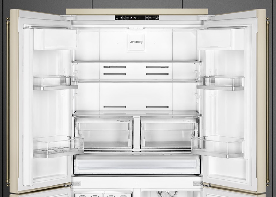Обновленный кремовый холодильник Smeg из линейки Coloniale уже в продаже! Стильный фасад с распашными дверьми Side-by-Side, боковые стороны сделаны из прочной стали — благодаря этому модель не только отлично вписывается в интерьер, но и служит долгие годы. Электронная панель управления с дисплеем спрятана внутри, ничего не нарушает лаконичный внешний вид.