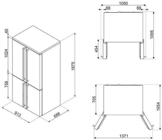 Наиболее разнообразны нестандартные холодильники большого размера типа Side-by-Side или French Door. Глубина таких устройств может составлять до 80-85 см. Как правило, это отдельностоящие модели, которые устанавливают в просторных помещениях. Несколько реже встречаются отдельностоящие холодильники увеличенной глубины с морозильной камерой сверху или снизу: их глубина может составить около 70-75 см. Среди них имеются как модели азиатского типа с морозильником сверху, так и европейского типа с морозильной камерой снизу — например, производства Liebherr.