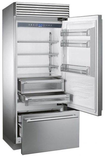Наиболее разнообразны нестандартные холодильники большого размера типа Side-by-Side или French Door. Глубина таких устройств может составлять до 80-85 см. Как правило, это отдельностоящие модели, которые устанавливают в просторных помещениях. Несколько реже встречаются отдельностоящие холодильники увеличенной глубины с морозильной камерой сверху или снизу: их глубина может составить около 70-75 см. Среди них имеются как модели азиатского типа с морозильником сверху, так и европейского типа с морозильной камерой снизу — например, производства Liebherr.