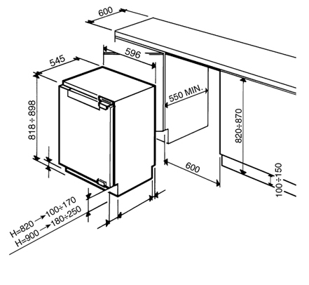 Мини-холодильники, которые могут быть установлены в тумбу или под столешницу, отличаются несколько меньшей шириной от 50 см. Такую же небольшую ширину имеют встраиваемые модели, что связано со способом их установки.