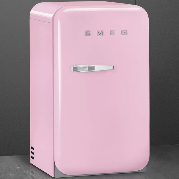 Smeg FAB5RPK — отдельностоящий мини-бар в оригинальном розовом цвете. Система автоматической разморозки рабочей камеры позволяет упростить процесс обслуживания прибора. Встроенная подсветка гарантирует комфорт при эксплуатации.