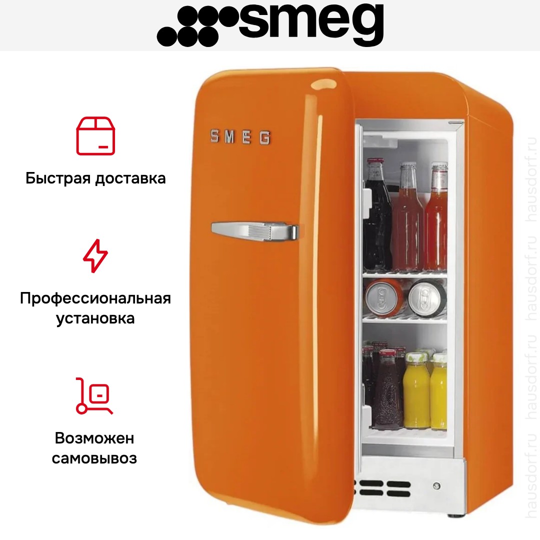 Мини-бар Smeg FAB5LOR6 — сочетание ретро-стиля и компактной функциональности в ярком оранжевом цвете. Корпус с округлыми формами и глянцевой эмалью притягивает взгляд и добавляет характер любой кухне или гостиной. Внешняя ручка подчеркивает винтажный дизайн и обеспечивает удобный хват при открытии. Лаконичные пропорции 74×40.4×50 см делают прибор заметным, но не громоздким в помещении.