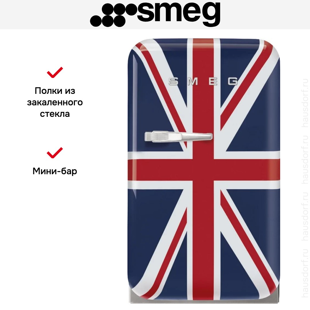 Корпус в цвете «Британский флаг» станет выразительным акцентом в комнате и привлечёт внимание гостей. Закругленные линии и внешняя ручка передают характерную для середины XX века элегантность, при этом металл и эмаль устойчивы к износу. Небольшие габариты 74×40.4×50 см позволяют разместить устройство в нише, под столешницей или возле барной стойки, а глубина с ручкой 56.9 см учитывайте при планировке прохода и установки.