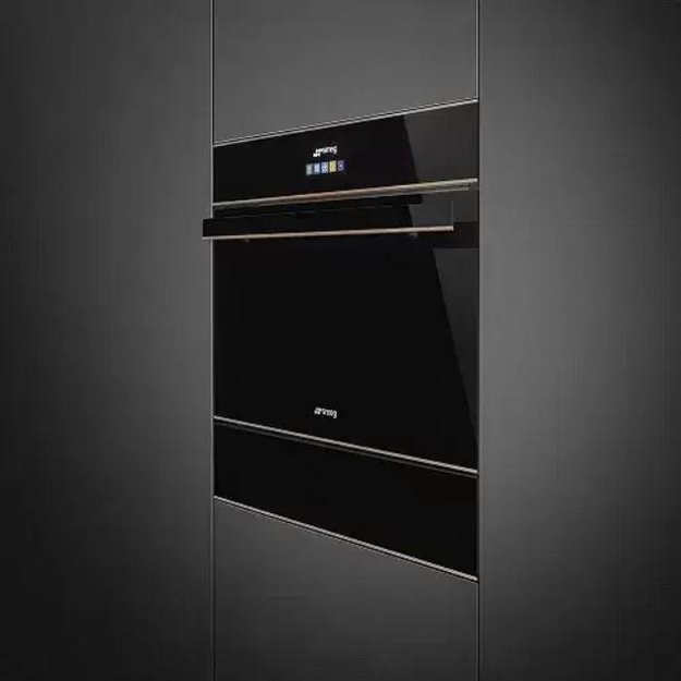 Модель с фасадом из термостойкого стекла Eclipse черного цвета может встраиваться в колонну на удобной высоте. Сенсорная система управления с цветным TFT-дисплеем позволяет регулировать температуру в пределах от −35°С до + 75°С. Быстрая заморозка сохраняет все полезные свойства продуктов.