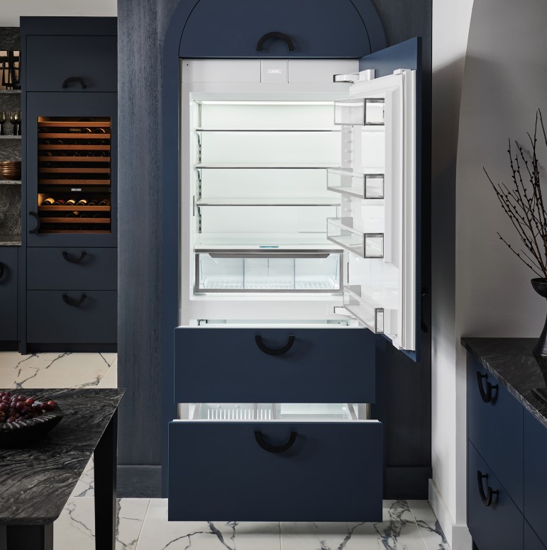 Наиболее разнообразны нестандартные холодильники большого размера типа Side-by-Side или French Door. Глубина таких устройств может составлять до 80-85 см. Как правило, это отдельностоящие модели, которые устанавливают в просторных помещениях. Несколько реже встречаются отдельностоящие холодильники увеличенной глубины с морозильной камерой сверху или снизу: их глубина может составить около 70-75 см. Среди них имеются как модели азиатского типа с морозильником сверху, так и европейского типа с морозильной камерой снизу — например, производства Liebherr.