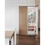 Встраиваемые холодильники монтируются в нишу или колонну. Передняя их часть закрывается декоративным мебельным фасадом и снаружи не отличается от дверцы обычного кухонного шкафа, так что их не нужно подбирать под интерьер помещения. Объем этих холодильников, как правило, несколько меньше, чем у отдельностоящих, так как при встраивании необходимо оставлять свободное пространство для вентиляции. Они отличаются меньшим уровнем шума, а также лучше держат холод и отличаются большей экономичностью из-за дополнительного слоя изоляции. Ассортимент этих холодильников не так велик, как у отдельно стоящих, установка более трудоемкая, а стоимость обычно несколько выше.