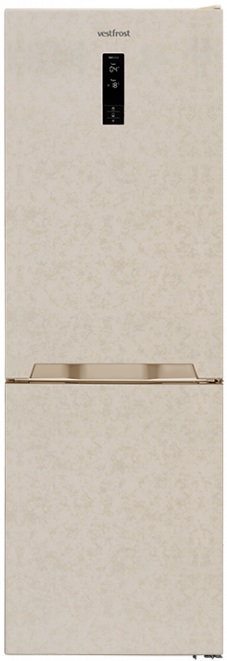 Отдельностоящий холодильник в стильном корпусе мраморно-бежевого цвета. Технология No Frost Advanced позволяет сохранять температуру на нужном уровне, при этом воздушные потоки в камерах не связаны между собой. Управлять прибором легко с помощью дисплея на двери.