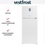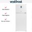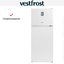 Белый двухкамерный холодильник с морозильником No Frost наверху. В основном отделении есть вместительная зона свежести с возможностью регулировать влажность воздуха, предназначенная для хранения фруктов, овощей, молочных и мясных продуктов. Благодаря электронному управлению с помощью дисплея на двери можно выбирать специальные функции: отключение холодильной камеры на время отъезда, приготовление ледяных кубиков, экономичное использование. Экономичная светодиоидная подсветка упростит поиск продуктов внутри.