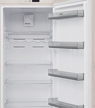 No Frost (Total No Frost, Frost Free): вентилятор обеспечивает циркуляцию охлажденного воздуха, благодаря чему лед не нарастает на стенке, а концентрируется только на скрытом внутри холодильника испарителе. Талая вода собирается в специальной емкости и испаряется. Такой холодильник не нужно размораживать – это экономит время и позволяет не останавливать прибор. Благодаря этим плюсам в современных моделях No Frost – самая распространенная система.