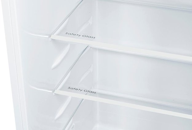Для стеклянных бутылок, особенно винных и содержащих другие алкогольные напитки, предусматривается размещение на подвесной решетчатой металлической полке. Бутылки на ней располагаются в горизонтальном положении — это оптимальный способ хранения вин. Съемная металлическая полка легко моется под краном.
