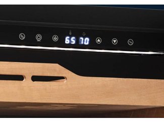 Шкаф для хранения домашней коллекции сигар с двумя полками и глубоким выдвижным ящиком. За температурой в камере легко следить на дисплее, а регулировать ее — сенсорными кнопками.