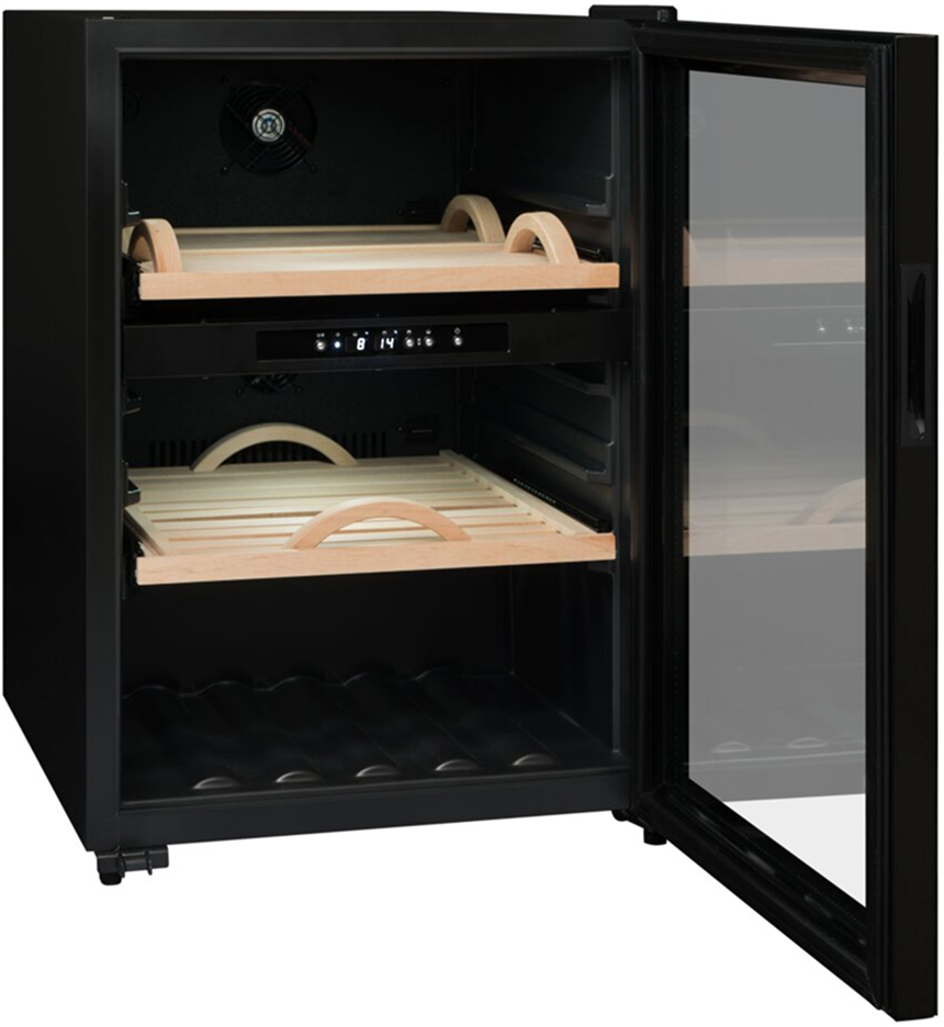 Установлен на воздуховоде, чтобы удалять примеси и запахи, которые могут нарушить выбранные условия хранения сигар.
