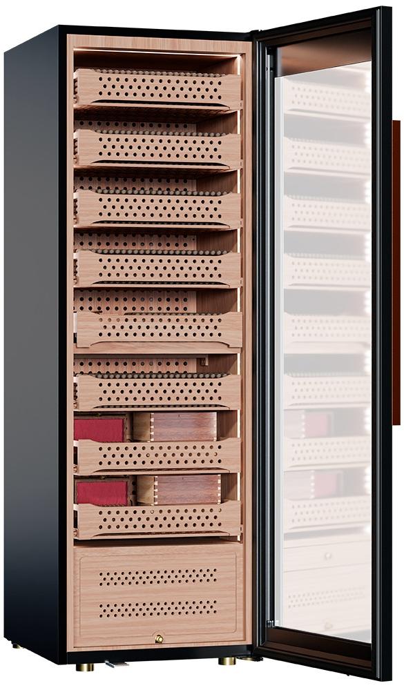 Качественное внутреннее освещение является одним из важнейших эстетических факторов восприятия хьюмидора. Благодаря ему вы сможете при более приятном свете осматривать находящиеся внутри сигары.