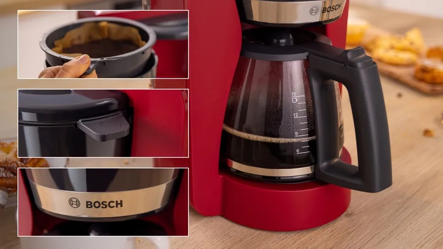 В модели Bosch TKA4M234 используется молотый кофе: экспериментируйте с сырьем крупного и среднего помола, чтобы добиться идеального вкуса. Капельная кофемашина — один из самых простых вариантов для тех, кому не нужно большое разнообразие напитков. Принцип работы таков: капли нагретой воды проходят сквозь отсек с кофе и выходят наружу уже насыщенной ароматной смесью.
