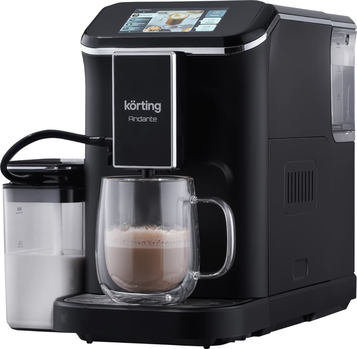 В модели Korting KACM 2002 Andante используются сразу два типа кофе — молотый и зерновой: это расширяет ваши возможности и увеличивает разнообразие напитков, которые можно приготовить с отличиями в крепости, ароматности и терпкости. Автоматическая кофемашина — по сути облегченная и уменьшенная версия приборов из кафе, она обладает широкими возможностями, разнообразным меню и продуманной системой контроля за процессом. Это отличный выбор как для дома, так и для офиса.