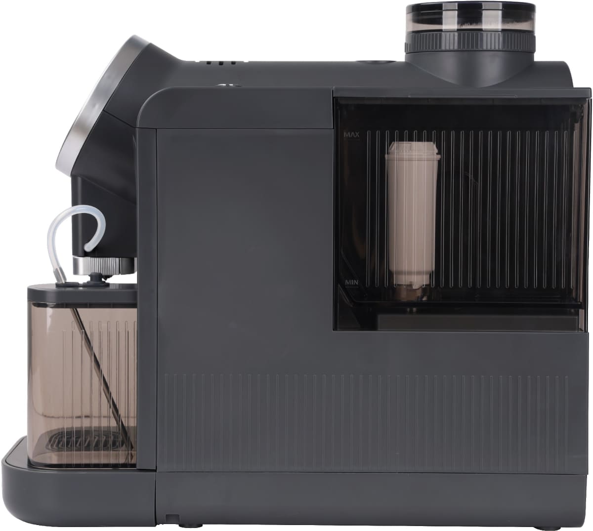 Визуальные характеристики кофемашины играют важную роль при выборе. Цвет корпуса этой модели — серый. Основной материал поверхности — нержавеющая сталь / пластик.