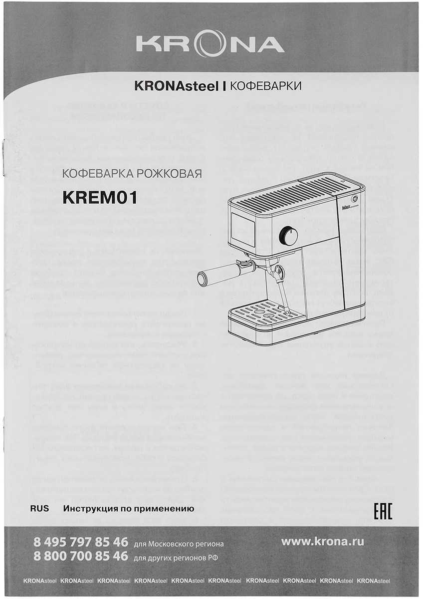 Кофеварка KRONA Espresso Kaffeemaschine Inox КА-00008023