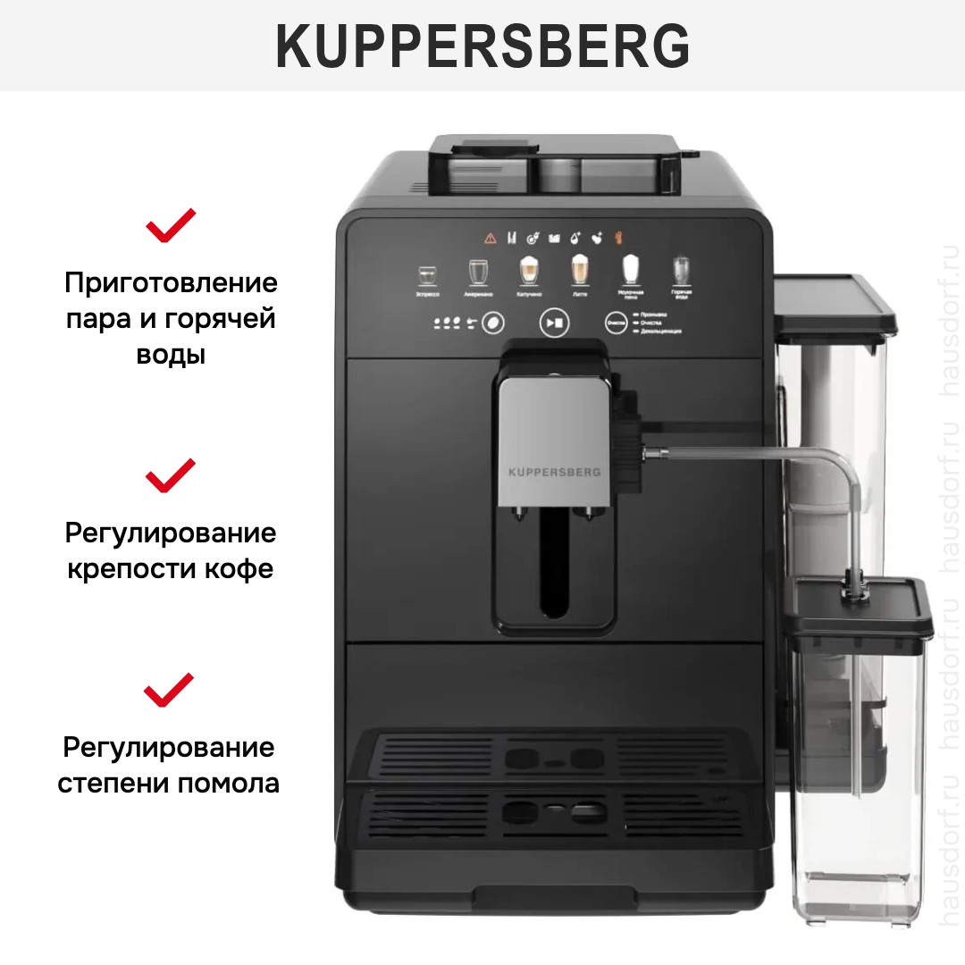 Кофемашина Kuppersberg KCF 402 B — это современное автоматическое устройство, созданное для ценителей насыщенного аромата и безупречного вкуса кофе. Модель поддерживает использование как свежемолотого, так и цельного кофейного зерна, что позволяет экспериментировать с оттенками вкуса и выбирать оптимальный способ приготовления в зависимости от настроения или времени суток. Благодаря встроенной кофемолке (при работе с зёрнами) и продуманной системе дозировки, каждый напиток получается свежим, насыщенным и с богатой кремовой пенкой.