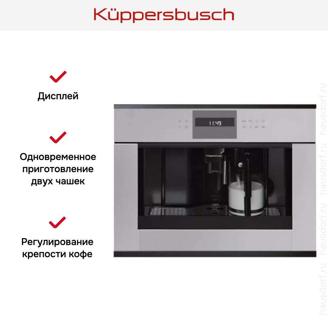 Кофемашина Kuppersbusch CKV 6550.0 G2 Black Chrome — встраиваемая модель, которую отличает широкий функционал. Устройство гармонично вписывается в интерьеры и идеально сочетается с другой бытовой техникой производителя. Помимо разнообразия напитков, которые может готовить прибор, пользователь может самостоятельно задать настройки по крепости, температуре или размеру порции. Перед каждым включением машина совершает автоматическое ополаскивание. Кофемашина Купперсбуш CKV 6550.0 G2 Black Chrome оснащена защитой от детей, которая заключается в блокировки панели управления от изменения настроек.