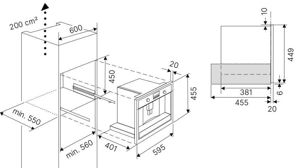 Высота кофемашин зависит от типа установки. Встраиваемые устройства, которые могут монтироваться в колонну с другой бытовой техникой, имеют стандартную высоту 45 см, соответствующую габаритам мебельной ниши. Высоту установки рекомендуется выбирать в диапазоне от 85 до 95 см. Большинство настольных устройств отличается компактностью, высота их зависит в основном от типа прибора. Минимальное ее значение для рожковых и эспрессо-машин составляет 30 см. У настольных автоматических устройств высотой от 60 см и до 75 см контейнеры для воды, молока и зерен располагаются в верхней части.