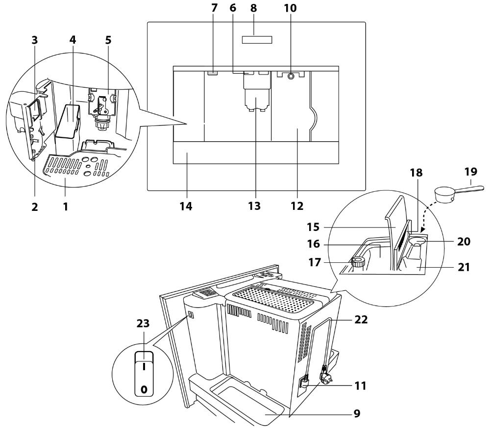 Встраиваемые кофемашины — автоматические устройства для приготовления напитков с молоком или без него. Весь процесс приготовления, от помола зерен и до очистки и промывки по завершении, происходит без участия пользователя. Машины оснащаются вместительными контейнерами для зерен, воды и молока с легким доступом. Размеры встроенных устройств позволяют устанавливать их в колонну с другой техникой: ширина составляет около 60 см, а высота — около 45 см. Как правило, все модели изготавливаются в современном стиле, оснащаются сенсорным управлением, подсветкой, полкой для подогрева чашек.