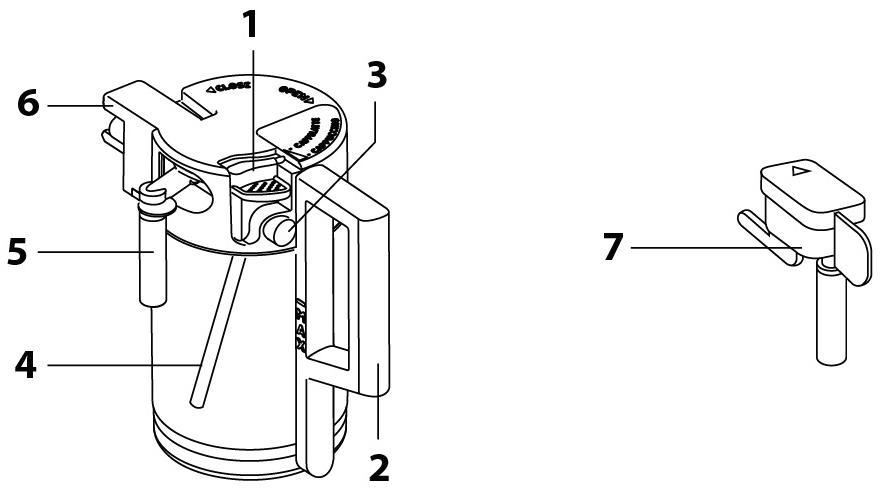 Съемный контейнер для молока в кофемашинах позволяет готовить латте или капучино, не боясь, что молоко испортится в стационарном резервуаре, а также гарантирует полностью автоматический процесс приготовления. Такой контейнер часто называют кувшином для молока благодаря характерной форме, удобной ручке и плотно прилегающей крышке. Контейнер можно легко извлечь сразу после приготовления напитка. Материал изготовления его — прозрачный экологически безопасный пластик. После извлечения контейнер можно хранить в холодильнике: как правило, использовать его следует в течение суток.