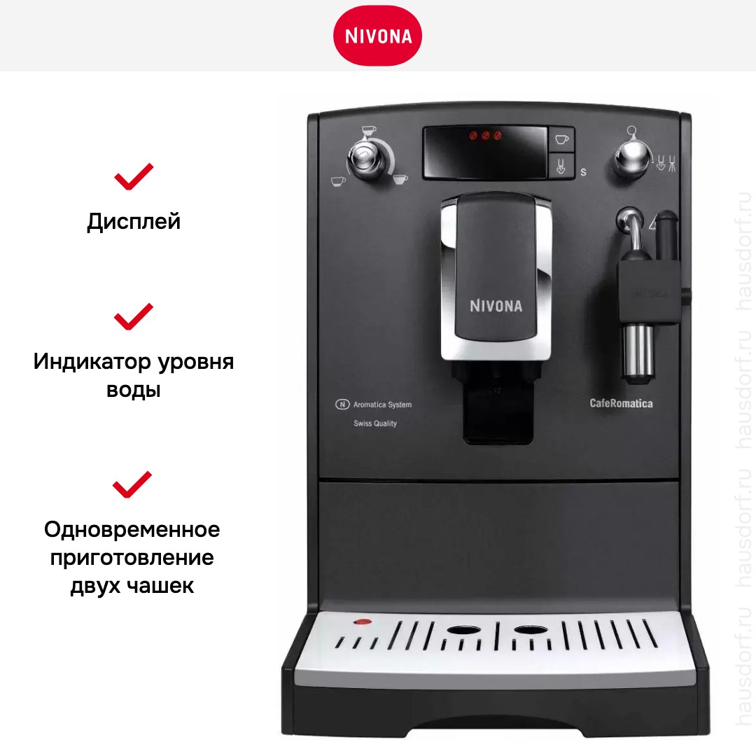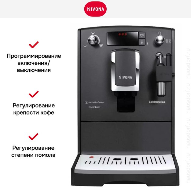 Автоматическая кофемашина Nivona поможет приготовить любимый напиток и поэкспериментировать с привычными вкусами. Прибор работает как с молотым, так и с зерновым кофе — вы можете регулировать степень его помола, чтобы получить идеальную крепость. Отдельная шкала настроек есть для таких параметров: температура кофе, температура воды, уровень жесткости воды и т. д.