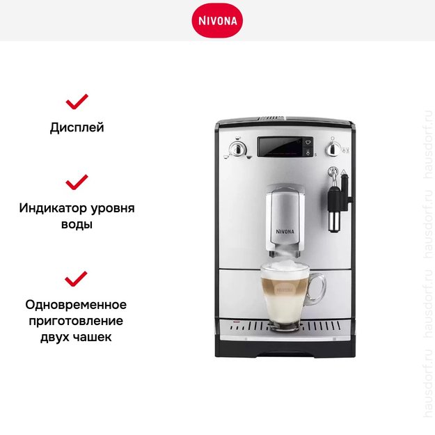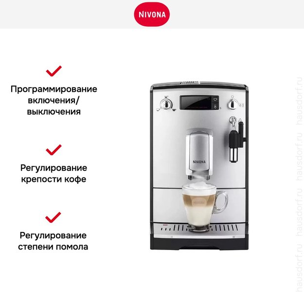 Кофемашина CafeRomatica Nivona NICR 530 — отличное дополнение к имеющейся кухонной технике, она подарит вам насыщенный вкус свежесваренного напитка. Когда времени мало или хочется его потратить на более интересные вещи, именно автоматическое устройство вскипятит за вас воду и приготовит ароматный кофе, вам нужно будут всего лишь выбрать степень помола, температуру и крепость, регулятор высоты дозатора позволит поставить кружку почти любого размера.