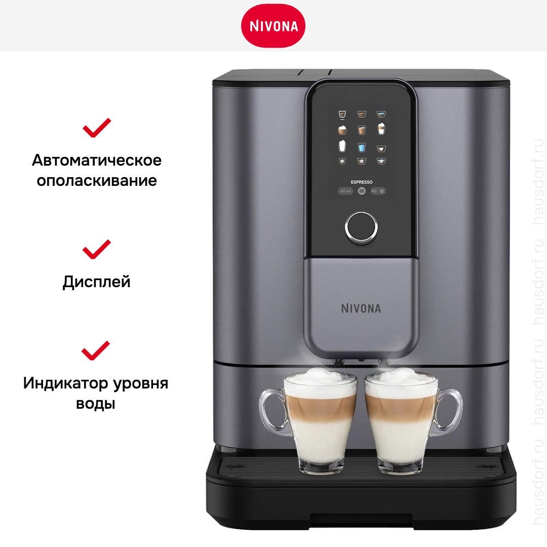 В модели Nivona NIVO 8107 используются сразу два типа кофе — молотый и зерновой: это расширяет ваши возможности и увеличивает разнообразие напитков, которые можно приготовить с отличиями в крепости, ароматности и терпкости. Автоматическая кофемашина — по сути облегченная и уменьшенная версия приборов из кафе, она обладает широкими возможностями, разнообразным меню и продуманной системой контроля за процессом. Это отличный выбор как для дома, так и для офиса.