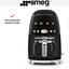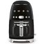 Капельная кофемашина Smeg в стиле 50-х готовит крепкий американо. В кувшин помещается до 10 порций. Можно выбрать функцию 4 чашки, чтобы сварить сколько нужно. Регулировка времени, поддержание тепла в течение 20 минут — удобные функции для быстрого завтрака.