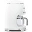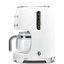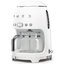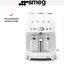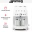 Капельная кофемашина Smeg в стиле 50-х готовит крепкий американо. Вы можете сделать до 10 порций или сэкономить время и выбрать функцию 4 чашки. Кувшин с кофе снимается, благодаря плотной крышке тепло не уходит. Отдельно стоящая компактная модель выполнена в белом цвете. Для приготовления напитка используется молотый кофе. Пользователь может отрегулировать крепость напитка, а также установить жесткость воды для лучшего заваривания. Предусмотрено автоматическое включение машины в заранее выбранное время. В верхней части корпуса находятся кнопки выбора параметров работы и дисплей с часами. Функция поддержания тепла в течение 40 минут поможет получить чашку горячего напитка в любое время. Уход за прибором не составляет труда с автоматическими программами очистки и промывки от накипи.