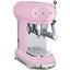 Корпус модели с характерными плавными очертаниями изготовлен из окрашенного металла и выполнен в мягком пастельно-розовом цвете. Устройство позволяет готовить не только обычный эспрессо, но и напитки с молоком — например, капучино. В набор основных функций входит регулировка количества кофе для каждой порции, установка температуры кофе на 3 уровнях, регулировка пара для капучино и задание жесткости воды также на 3 уровнях. Чтобы получить чашку кофе в выбранное время, используется функция автоматического отключения через 9 минут, 30 минут или 3 часа. Выбор одной или двух чашек кофе производится нажатием отдельной кнопки. При необходимости очистки от накипи включается специальный индикатор: сама очистка производится автоматически. Система защиты против капель и съемный каплесборник с индикатором уровня воды позволят защитить кухонную мебель. Удобная и наглядная панель управления очень проста в освоении. Нескользящие ножки гарантируют безопасность при использовании прибора. В комплект входят съемный резервуар для воды с дополнительным фильтром, лоток под чашки для латте макиато, фильтры на одну или две чашки и мерная ложка-темпер для трамбовки кофе.