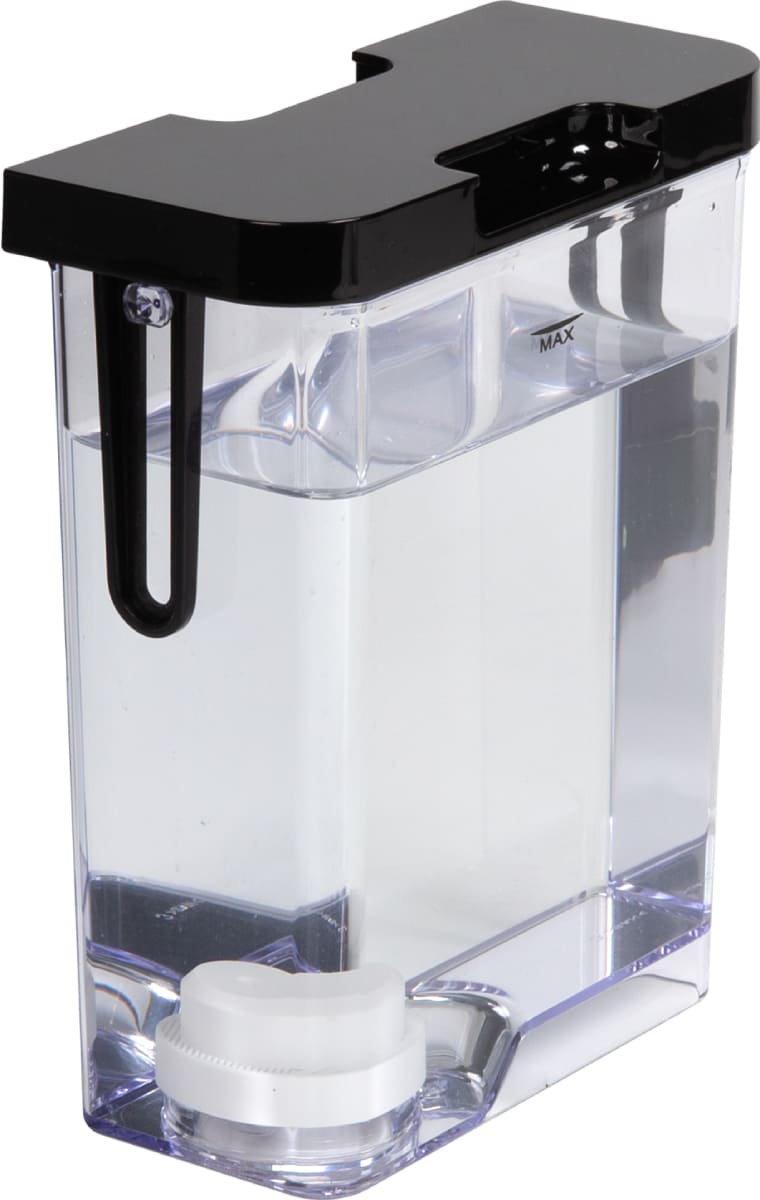 Съемный контейнер для воды во встраиваемых и отдельно стоящих кофемашинах — удобный аксессуар, позволяющий ускорить процесс приготовления напитков. Прозрачные контейнеры с легким доступом могут размещаться на фронтальной или верхней части машины. Для удобного извлечения они оснащаются ручками, залив воды производится через отверстие, которое можно закрыть плотной крышкой. Форма контейнера, как правило, прямоугольная, а материалом изготовления служит прозрачный безопасный пластик. Контейнеры могут оснащаться датчиком уровня воды для напоминания о необходимости их заполнения.