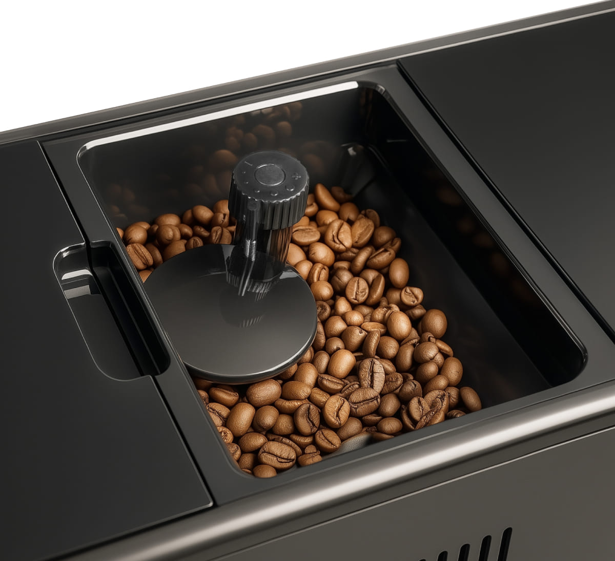 Контейнер для кофейных зерен — принадлежность кофемашин, оборудованных кофейной мельницей. Как правило, над мельницей он и располагается для более удобного помола кофе. Подобные контейнеры изготавливаются из безопасного пластика, прозрачного или непрозрачного, и бывают съемными и несъемными. Они оснащаются специальными датчиками, которые анализируют количество кофе, для оповещения о том, что контейнер скоро опустеет. Доступ к контейнеру для зерен зависит от типа встраивания кофемашины. Так, во встроенных машинах требуется вдвинуть прибор на телескопических направляющих.