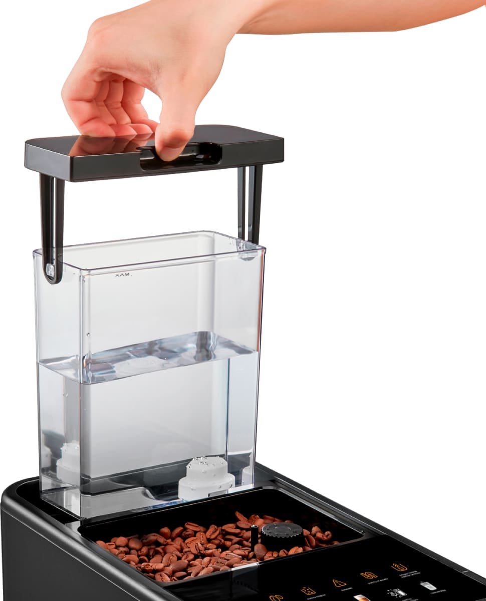 Индикатор уровня воды в автоматических кофемашинах указывает, насколько заполнен водой соответствующий резервуар и требуется ли доливать ее. Зачастую уровень воды можно контролировать визуально, через прозрачное окошко на корпусе прибора, с нанесенной шкалой в литрах или стандартных чашках. В ряде моделей резервуар оснащается поплавковым датчиком: как только он достигает определенного уровня, загорается светодиод на панели управления или появляется сообщение на дисплее. При появлении сигнала резервуар следует извлечь, заполнить водой и правильно установить на прежнее место.