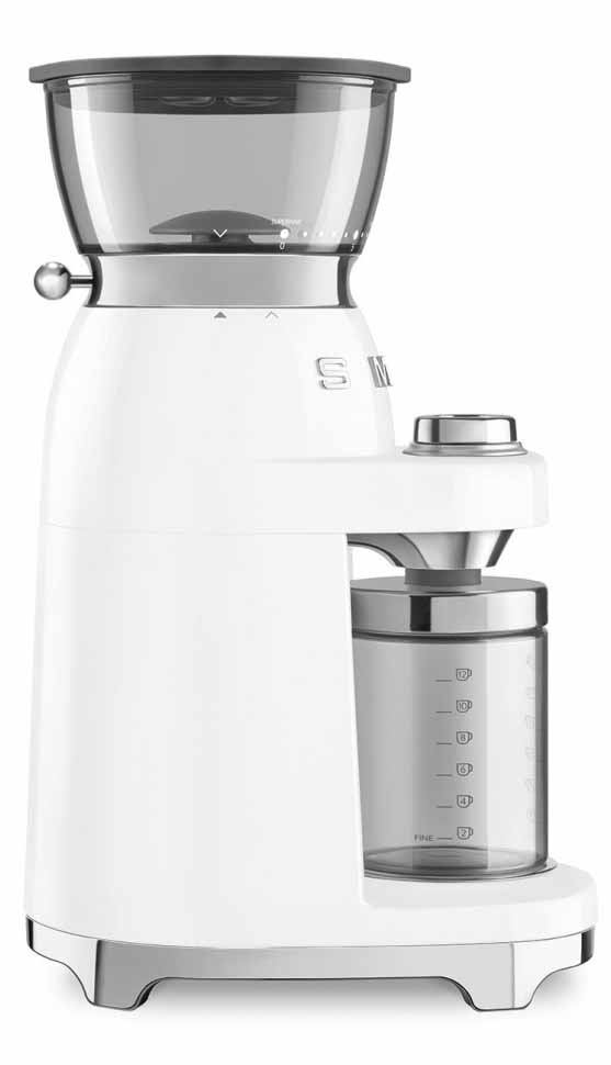 Модель оснащена коническими жерновами из нержавеющей стали, которые можно легко снять для очистки. Контейнеры для зерен и молотого кофе выполнены из прочного материала TritanTM, который гарантирует долгую службу, а также полностью безопасен для пищевых продуктов. Специальная поворотная система для защиты при снятии контейнера с зернами препятствует их рассыпанию.