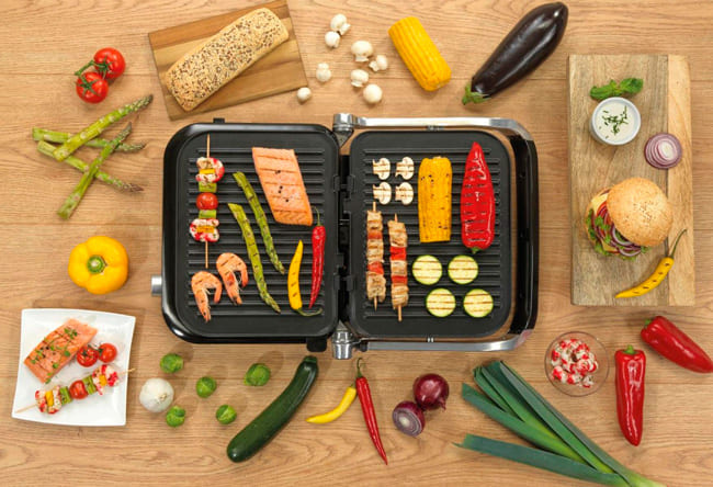 Отдельный гриль — отличное решение для дачной кухни. Он может быть встраиваемым или переносным, электрическим или газовым, открытым или прижимным. Принцип работы во всех случаях один — продукты быстро обжариваются под воздействием высоких температур (в районе 270 градусов). Благодаря этому можно получить любимые блюда без открытого огня.