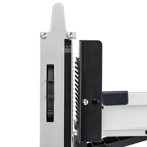 Единственная складная ломтерезка, которая занимает минимум места в сложенном виде. Ломтерезка комплектуется двумя ножами: зубчатым и гладким. Предусмотрен держатель для продуктов, гарантирующий безопасное использование устройства.