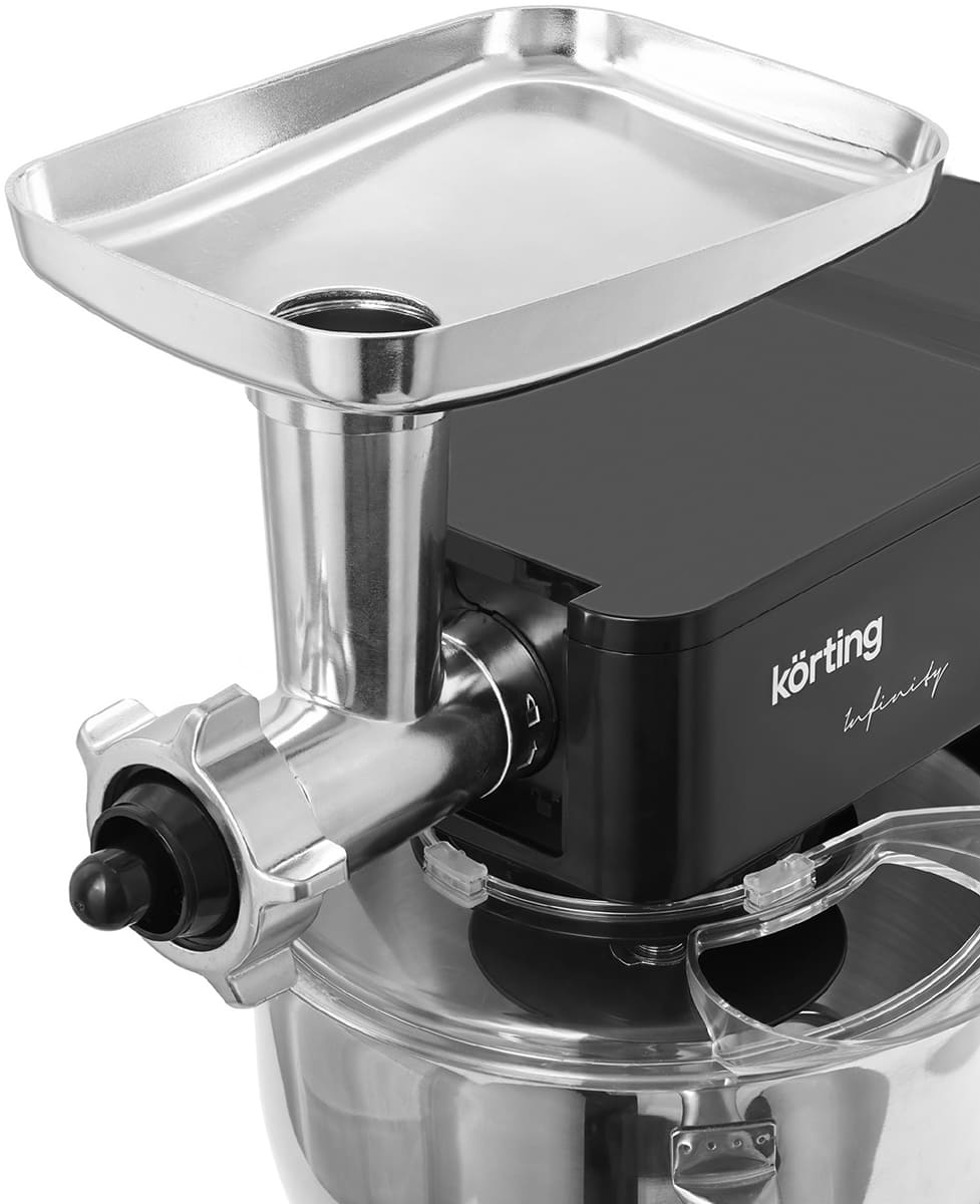 ‐ Аксессуары в комплекте: насадка-мясорубка с 3 дисками из нержавеющей стали, насадка для приготовления колбас разного диаметра