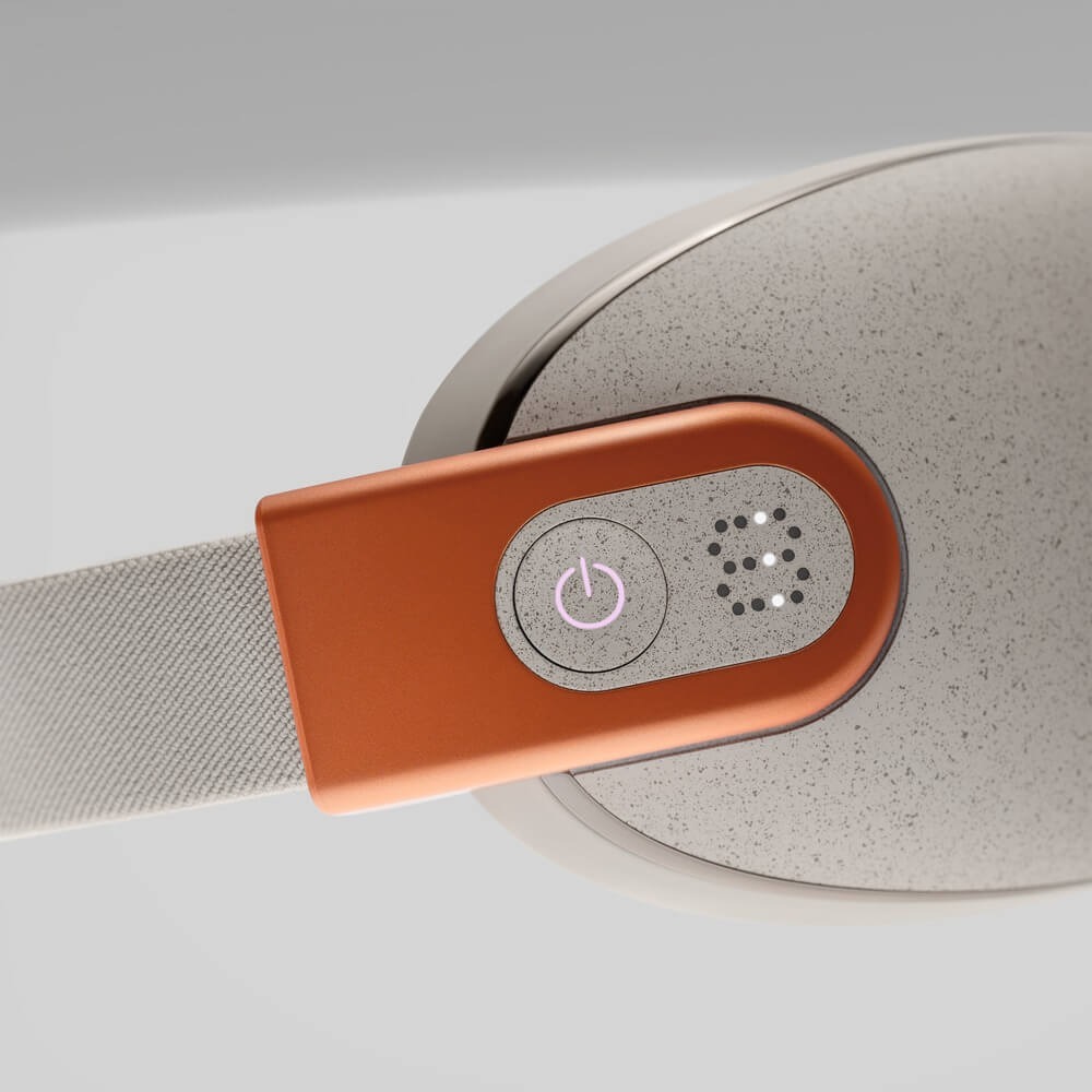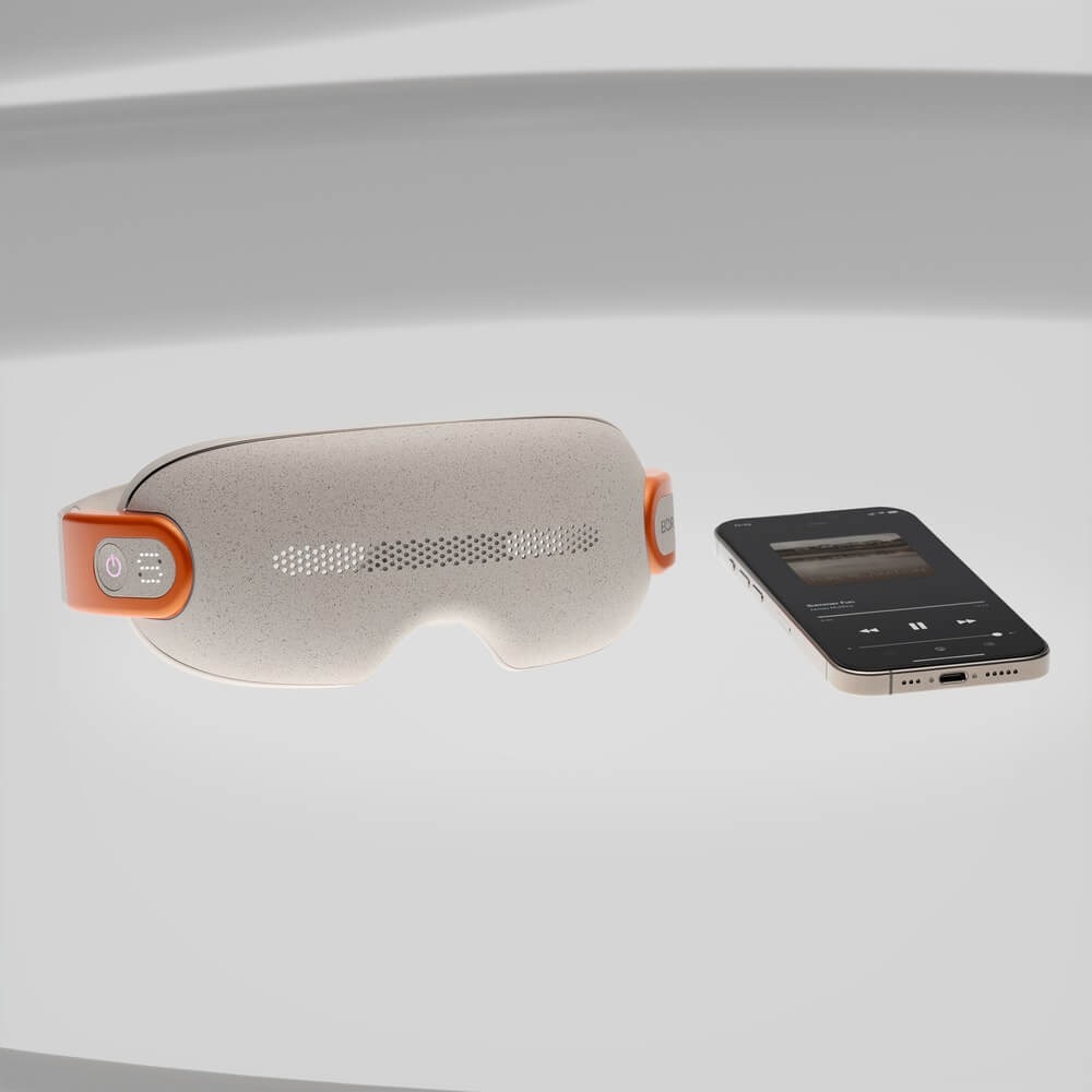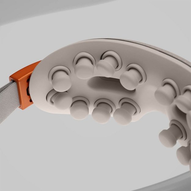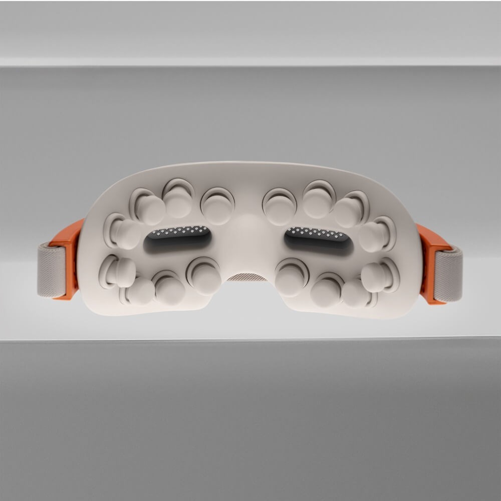 Массажер с подключением к телефону для аудиотерапии и тремя режимами расслабления мышц. Передняя модель перфорирована, сохраняет внешний обзор и стимулирует светом глазные нервы. За такую конструкцию и ее визуальное воплощение модель удостоены награды Red Dot Design Award.