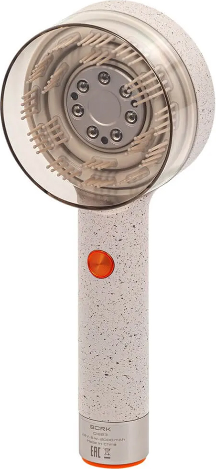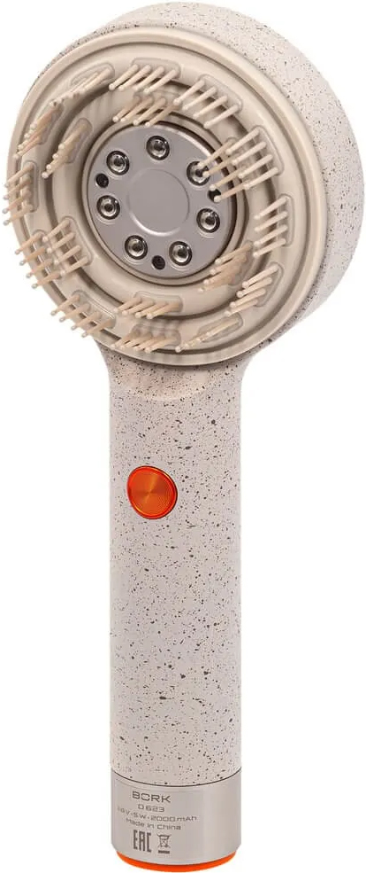 Массажер-расческа для головы BORK D623ch — это инновационное устройство, сочетающее в себе функции ухода за волосами и расслабляющего массажа кожи головы. Благодаря компактным размерам и весу всего 0,25 кг прибор невероятно удобен в использовании — он легко помещается в ладони и не утомляет руку даже при длительном применении. Изделие выполнено в изысканном оттенке «шампань», который придает ему элегантный и современный вид, а сочетание пластика и алюминия обеспечивает прочность, лёгкость и долговечность конструкции. Мощность устройства составляет 5 Вт, чего достаточно для эффективного, но деликатного воздействия без излишнего шума или вибрации. Несмотря на небольшое время непрерывной работы — около 10 минут (0,17 часа), — этого вполне достаточно для полноценного сеанса, направленного на стимуляцию кровообращения, снятие напряжения и улучшение состояния кожи головы. Уникальная форма зубцов имитирует движения профессионального массажиста, мягко воздействуя на корни волос, улучшая микроциркуляцию и способствуя более активному росту. Прибор идеально подходит как для ежедневного ухода, так и для использования до или после нанесения масок и сывороток, усиливая их проникновение в кожу. Благодаря продуманной эргономике массажер-расческа легко скользит по прядям, не вырывая волосы и не вызывая дискомфорта. Он подходит для всех типов волос и особенно рекомендуется тем, кто испытывает стресс, страдает от усталости или хочет улучшить внешний вид своей шевелюры. Простота в использовании, стильный дизайн и высокая функциональность делают эту модель незаменимым аксессуаром для заботы о себе. Устройство легко заряжается, быстро готово к использованию и может стать частью ежедневного ритуала красоты и релаксации.