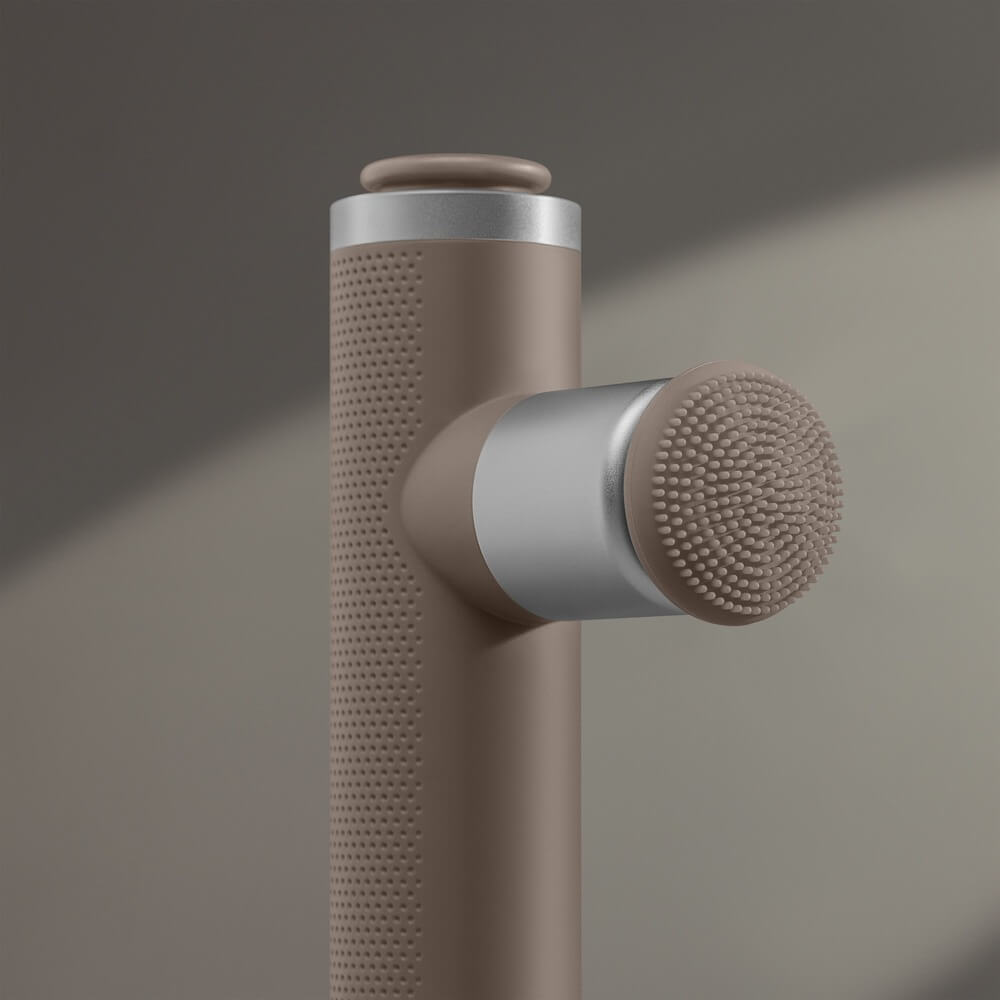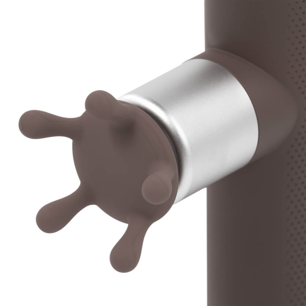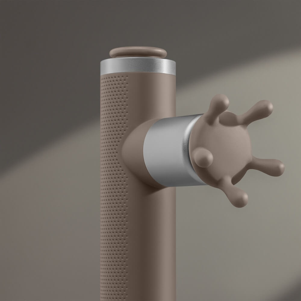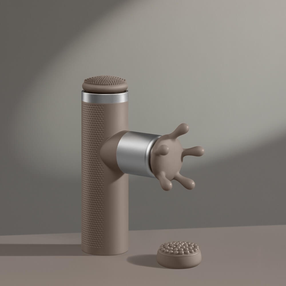 Перкуссионный массажер предназначен для расслабления мышц под давлением разной степени. Разные насадки подходят для лица, ладоней и ступней, тела.